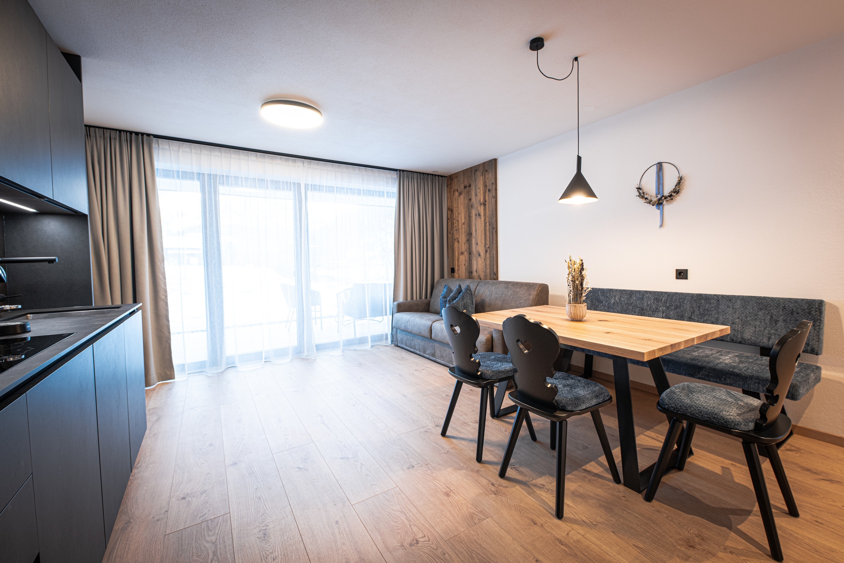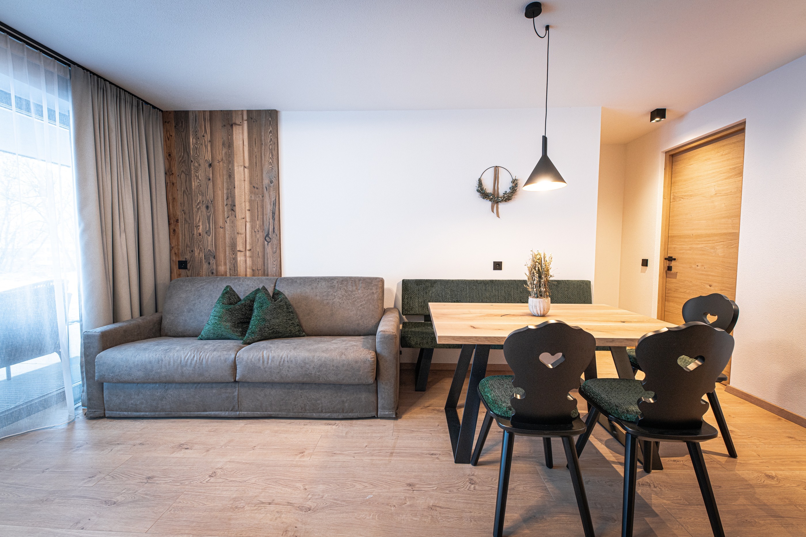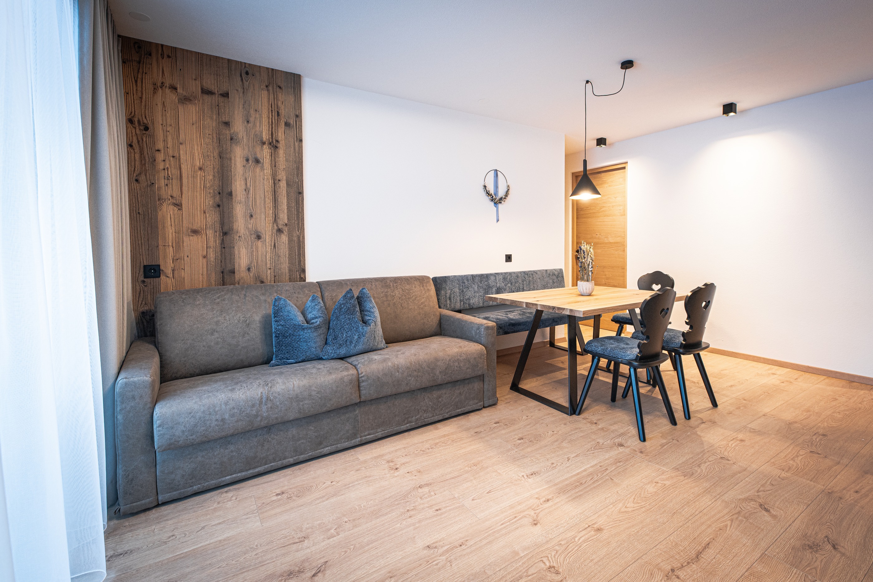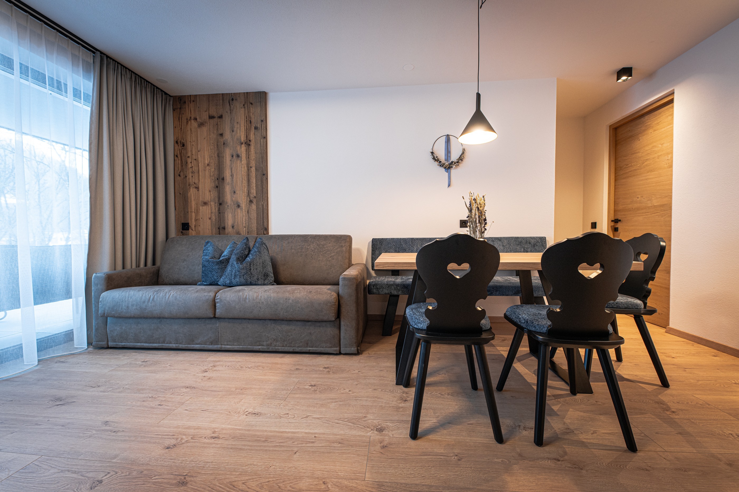 Das Apartment Acqua verbindet modernes Design mit alpinem Wohlfühlambiente und bietet Ihnen den idealen Rückzugsort nach einem aktiven Tag in den Bergen. Auf 55m2 finden bis zu 6 Personen Platz - perfekt für Familien, Paare oder Freunde. Zwei gemütliche Schlafzimmer, ein stilvoller Wohnbereich mit Schlafsofa, eine voll ausgestattete Küche sowie ein elegantes Badezimmer sorgen für höchsten Komfort.