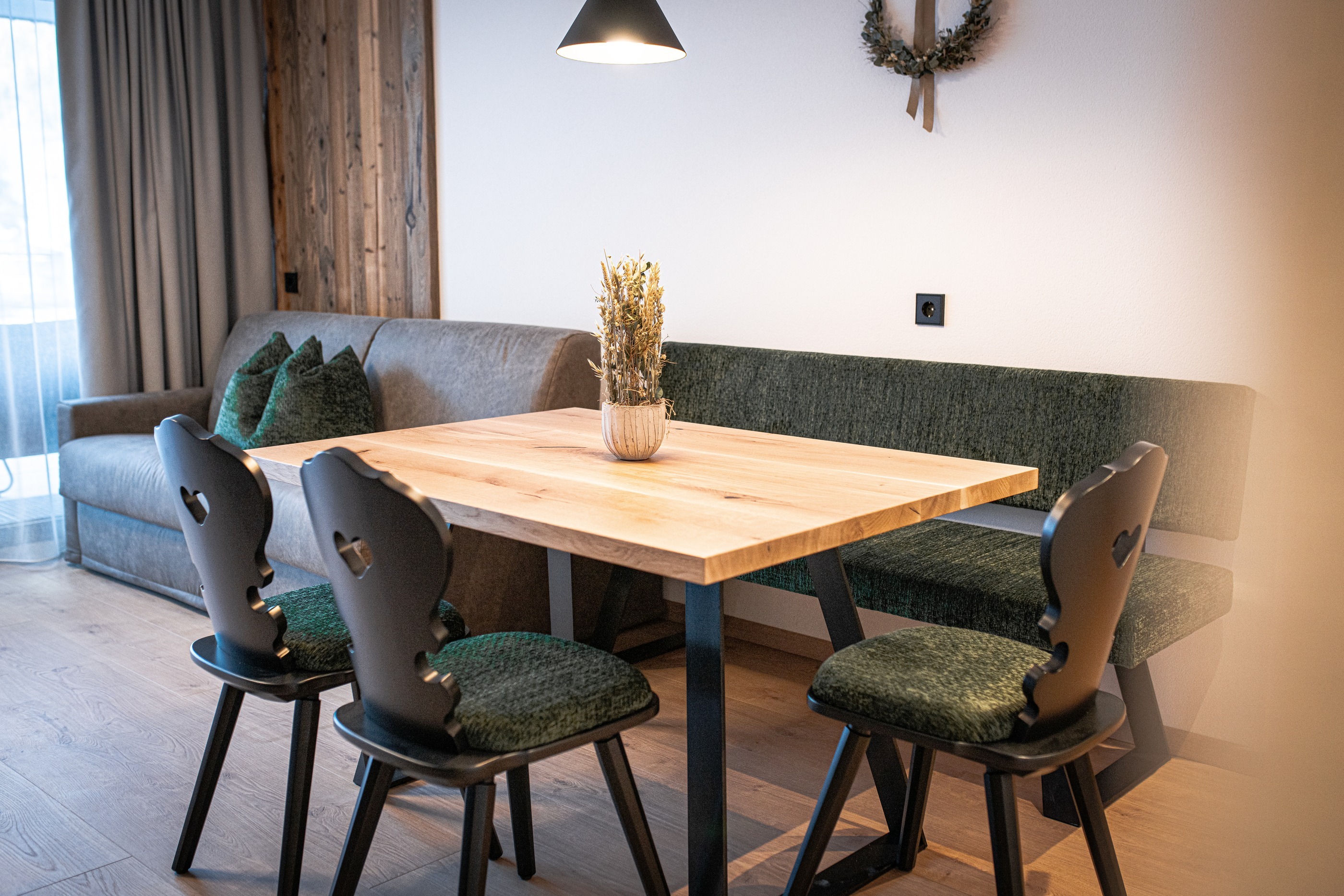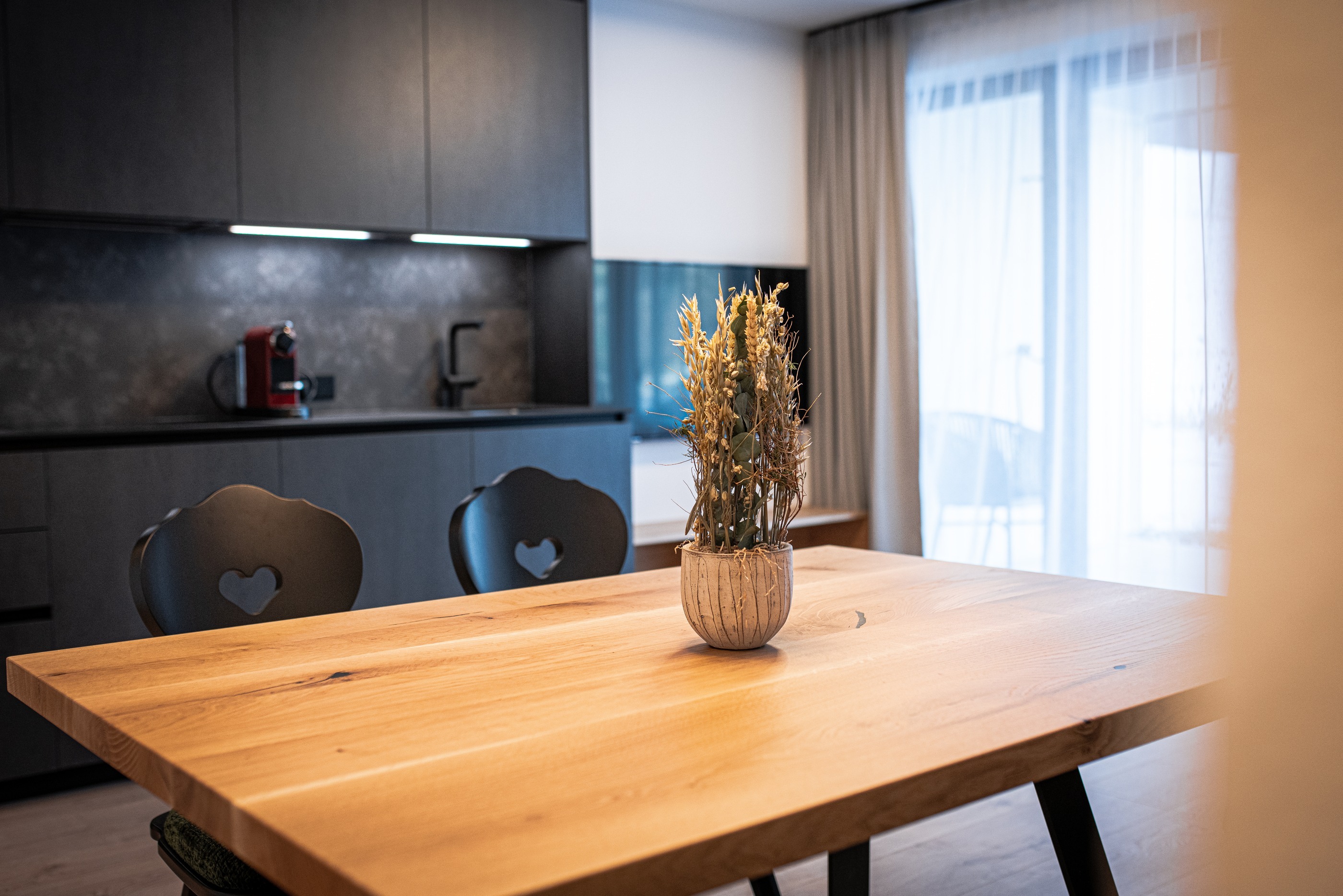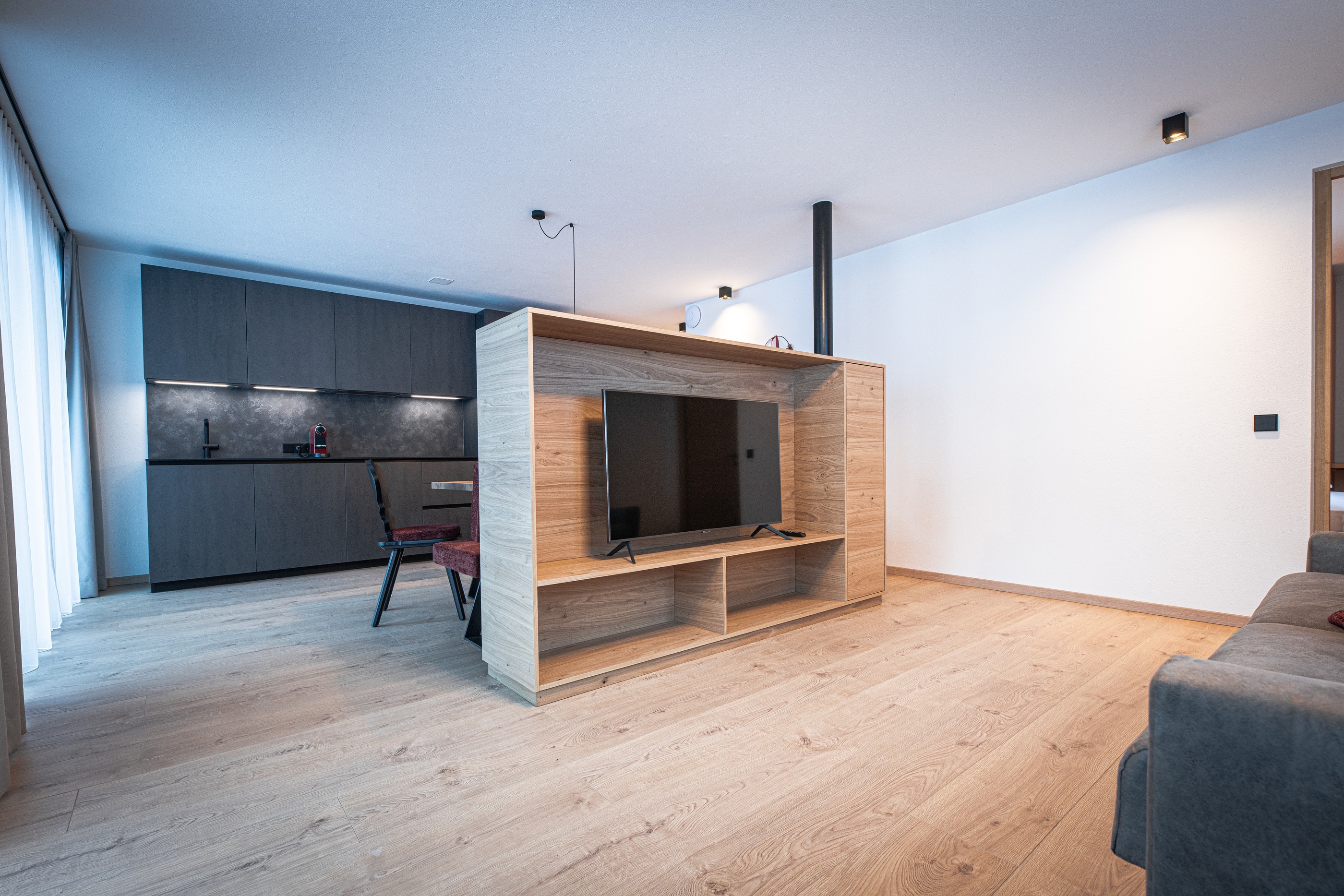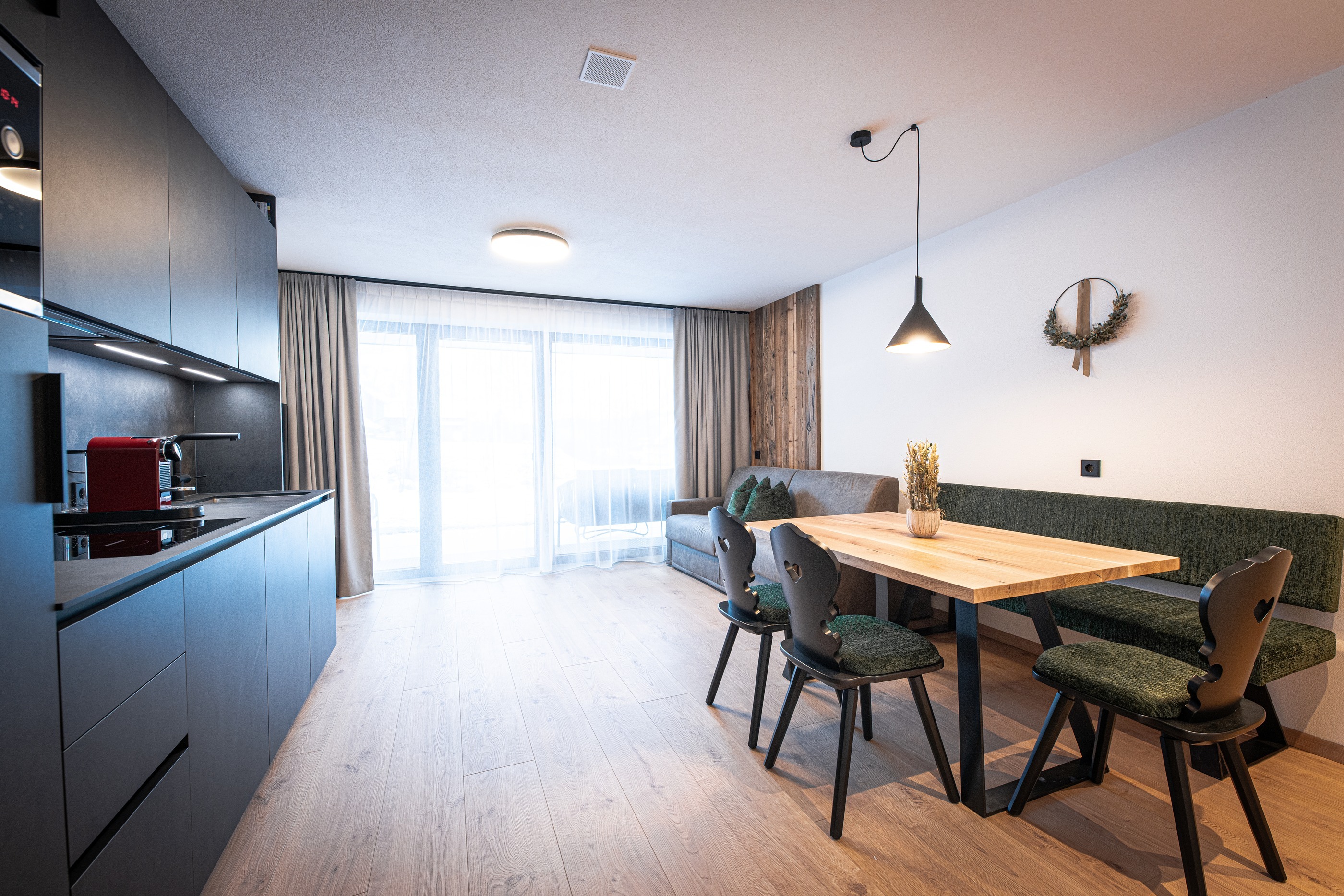 Das Apartment Acqua verbindet modernes Design mit alpinem Wohlfühlambiente und bietet Ihnen den idealen Rückzugsort nach einem aktiven Tag in den Bergen. Auf 55m2 finden bis zu 6 Personen Platz - perfekt für Familien, Paare oder Freunde. Zwei gemütliche Schlafzimmer, ein stilvoller Wohnbereich mit Schlafsofa, eine voll ausgestattete Küche sowie ein elegantes Badezimmer sorgen für höchsten Komfort.